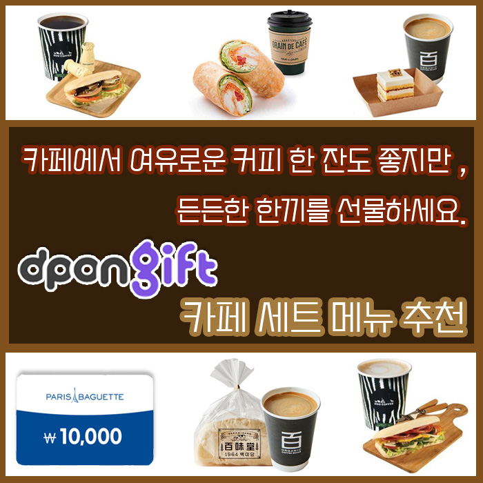 파리바게트뿐만아니라 커피에 반하다, 카페드롭탑, 뚜레쥬르 등 디폰기프트에는 다양한 브랜드의 금액권들이 준비되어있으니